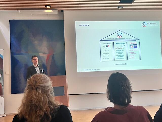 Alexander Bach (MEKUN) gab wertvolle Einblicke in die Problematik der im Meer versenkten Munition und stellte die Mission von MUNIMAR, dem Zentrum für das Management von Munition in der Meeresumwelt, vor.