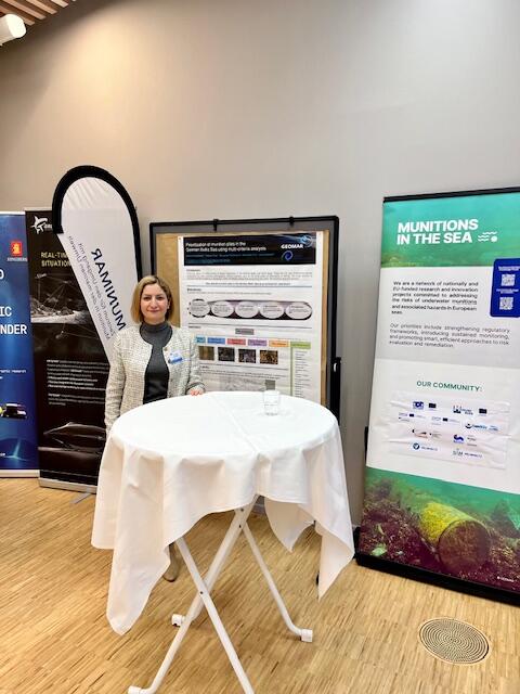 Dr. Samar Ensenbach (GEOMAR Helmholtz-Zentrum für Ozeanforschung) präsentierte zwei Poster, die die laufenden EU-finanzierten Forschungsarbeiten zu im Meer versenkter Munition und die Priorisierung von Munitionshaufen in der Ostsee im Rahmen des CONMAR-Projekts hervorhoben, mit dem Ziel, unser Verständnis der ökologischen und umweltbezogenen Risiken historischer Munition zu verbessern und evidenzbasierte Strategien zur Risikominderung zu unterstützen.